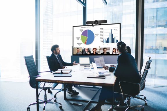 Statten Sie den Bildschirm mit einem Video-Konferenzsytem aus.